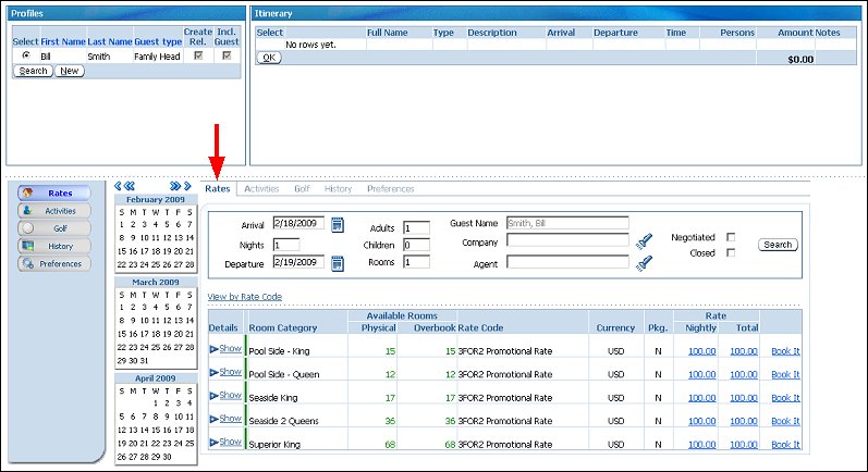Note: A profile must first be selected before a rate can be attached and a reservation booked.